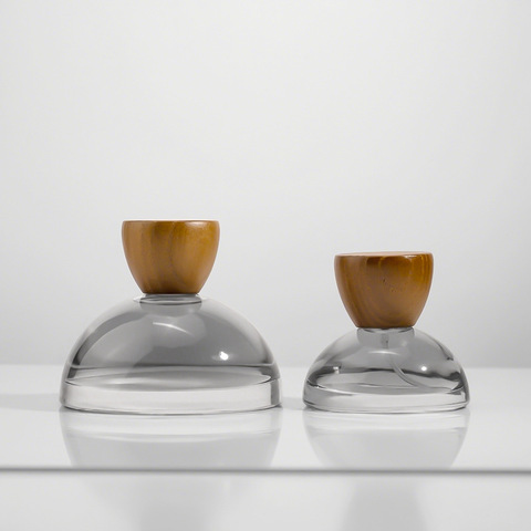 Nouveau flacon de parfum en verre de type poussoir trapézoïdal de 30ml/100ml avec fond épais et rond pour bouchon en bois boule