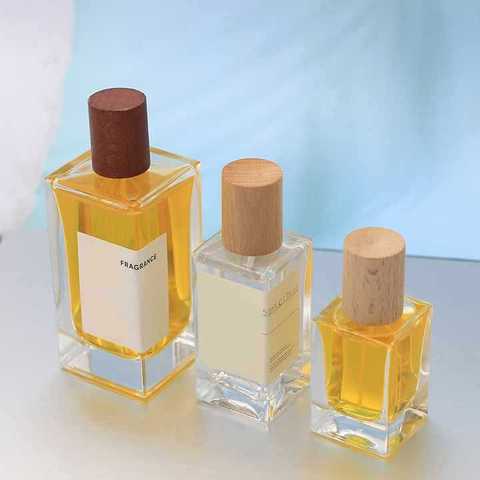 In Voorraad 30Ml/50Ml/100Ml Houten Dop Parfumeur Fles Klassieke Vierkante Vierkante Spray Lege Flessen Met Pomp Zegger